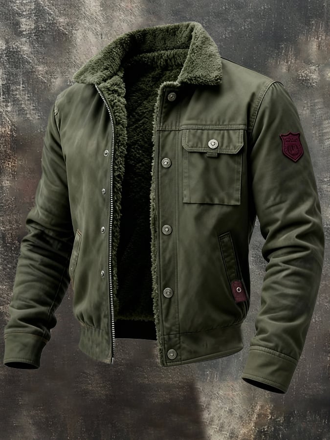 (Inner Pocket Design) Men's Retro Pure Cotton Twill Fleece-Lined Warm Multi-pocket Outdoor Jacket$74.99 USD -