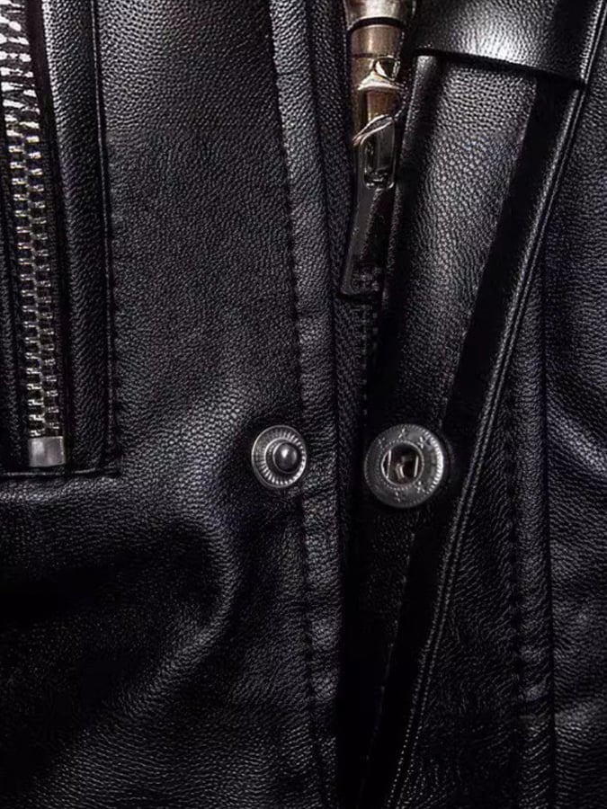 Men's Retro Motorcycle Leather Multi-Pocket Mid-Length Coat$92.69 USD -