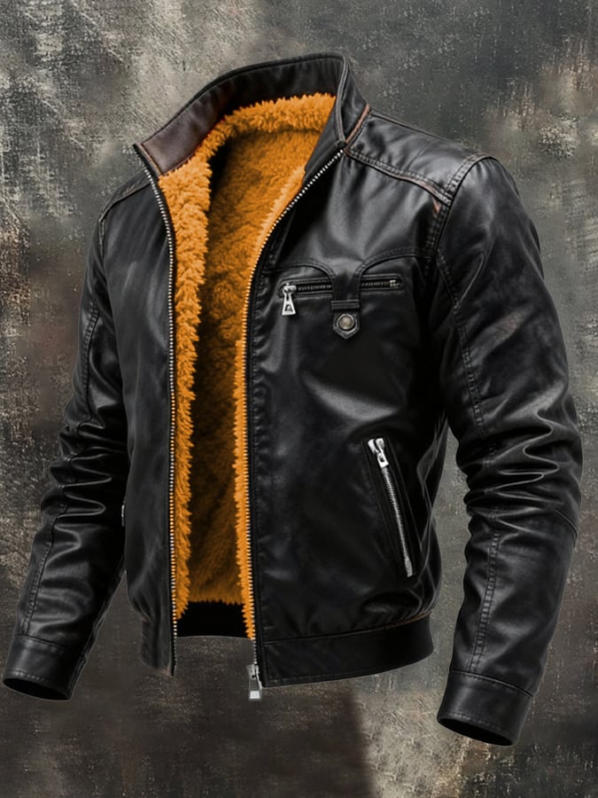 Men's Retro Warm Soft Leather Outdoor Jacket$61.51 USD