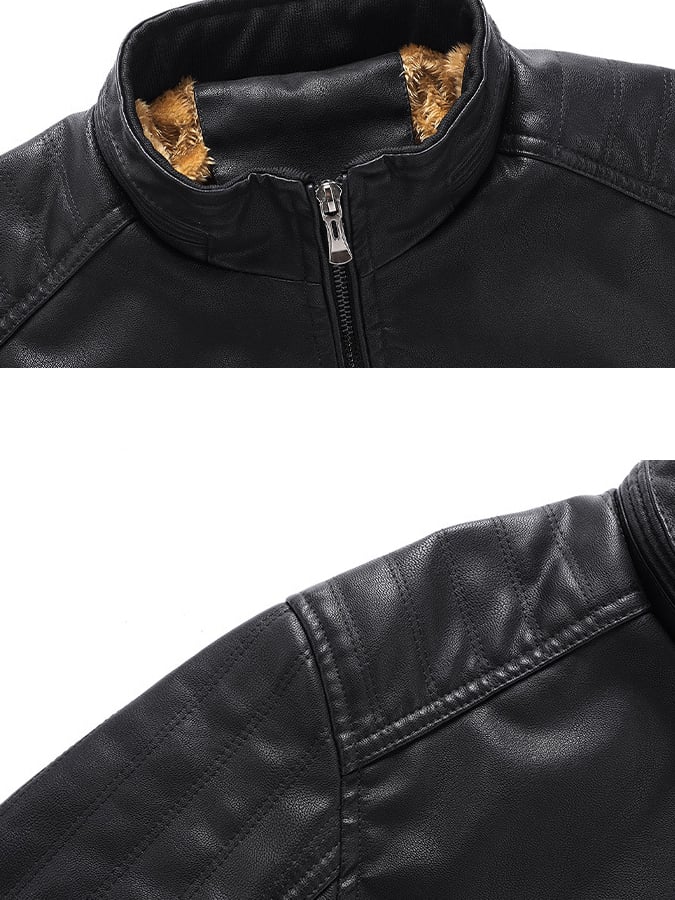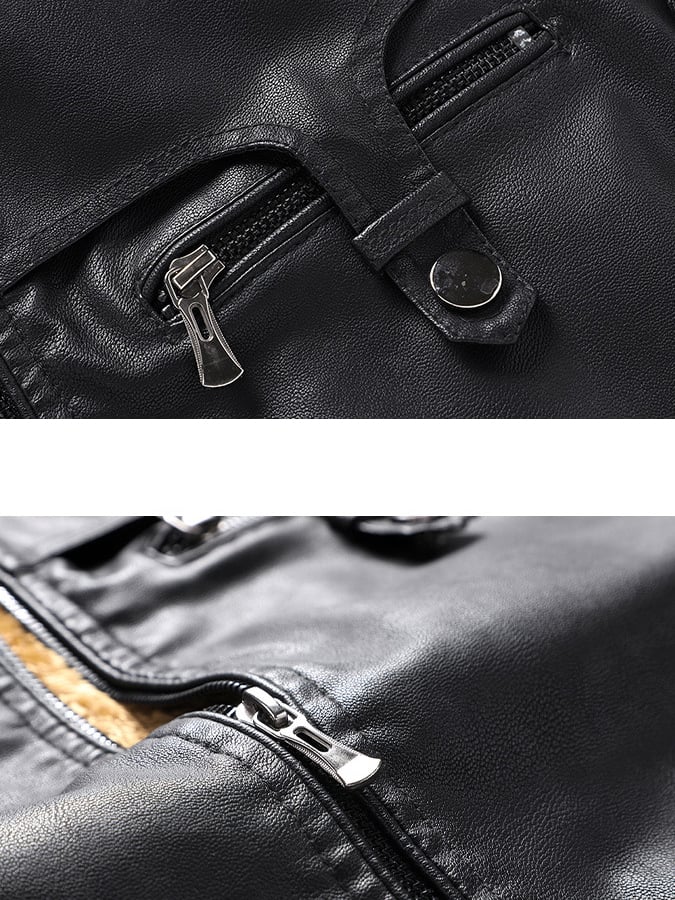 (Inner Pocket Design) Men's Retro Motorcycle Color-Blocked Leather Multi-pocket Outdoor Jacket