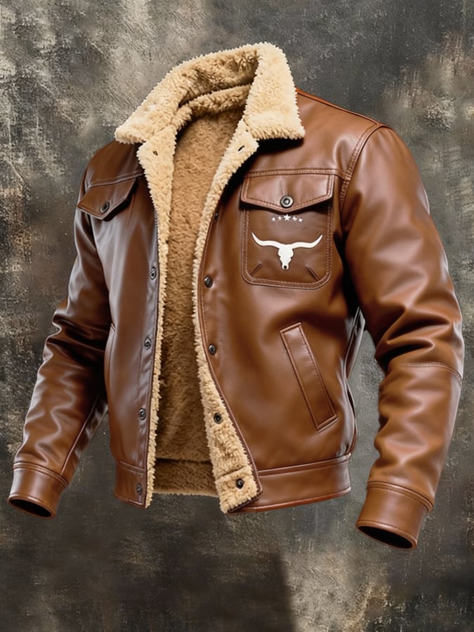 Men's Vintage Leather Patchwork Plush Warm Jacket
